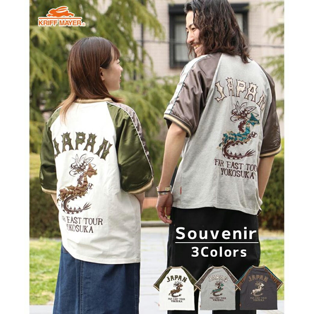 クリフメイヤー KRIFF MAYER メンズ Tシャツ ユニセックス 半袖 トップス 綿100 お揃い アメカジ ヴィンテージ感 バックプリント スーベニア 刺繍 スカT