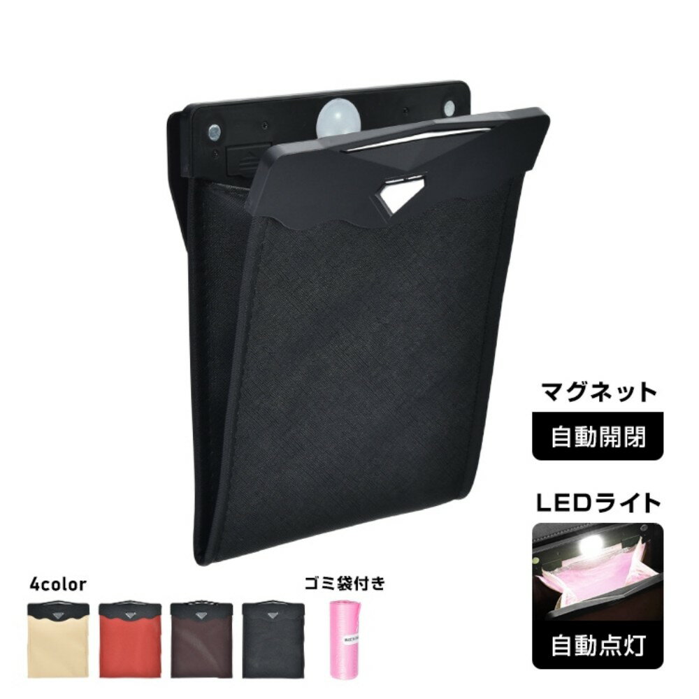 車用ゴミ箱 ダストボックス ゴミ袋付き LEDライト付き マグネット式開閉 自動点灯 オシャレ 運転席/助手席の後る 座席の足元 後部座席 小物入れ 車用品 カー用品 tkee003