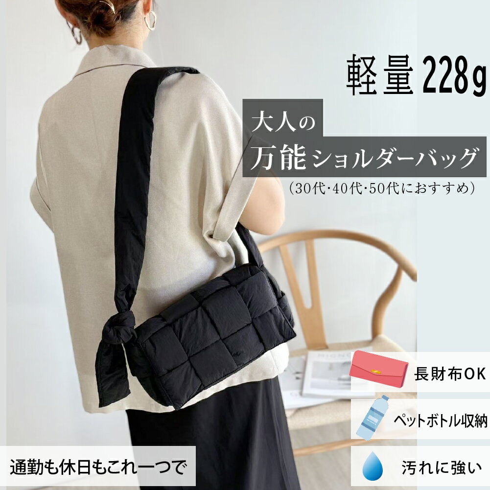 【軽量228g】 ショルダーバッグ レディース 小さめ 黒 長財布収納可 ペットボトル収納 ミニ トートバッグ 軽量 斜め掛け 肩掛け キルティング シンプル 大人 きれいめ 上品 30代 40代 50代 おしゃれ 普段使い 通勤 旅行 ママバッグ サブバッグ ギフト アミュリカ