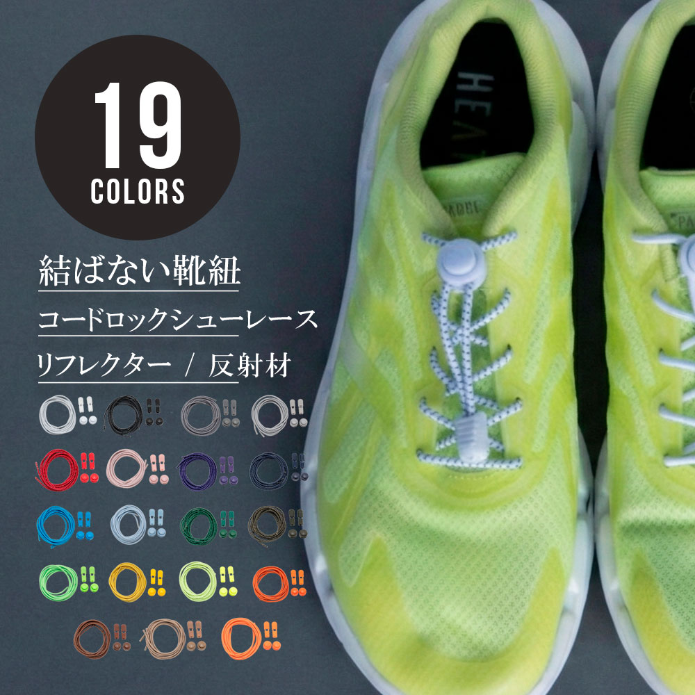 【 レビュークーポン 】結ばない 靴紐 ゴム製 ドローコード シューレース リフレクター 反射 伸縮 ストッパー付き 夜間視認性 ランニング スニーカー ウォーキング 簡単着脱 2本セット
