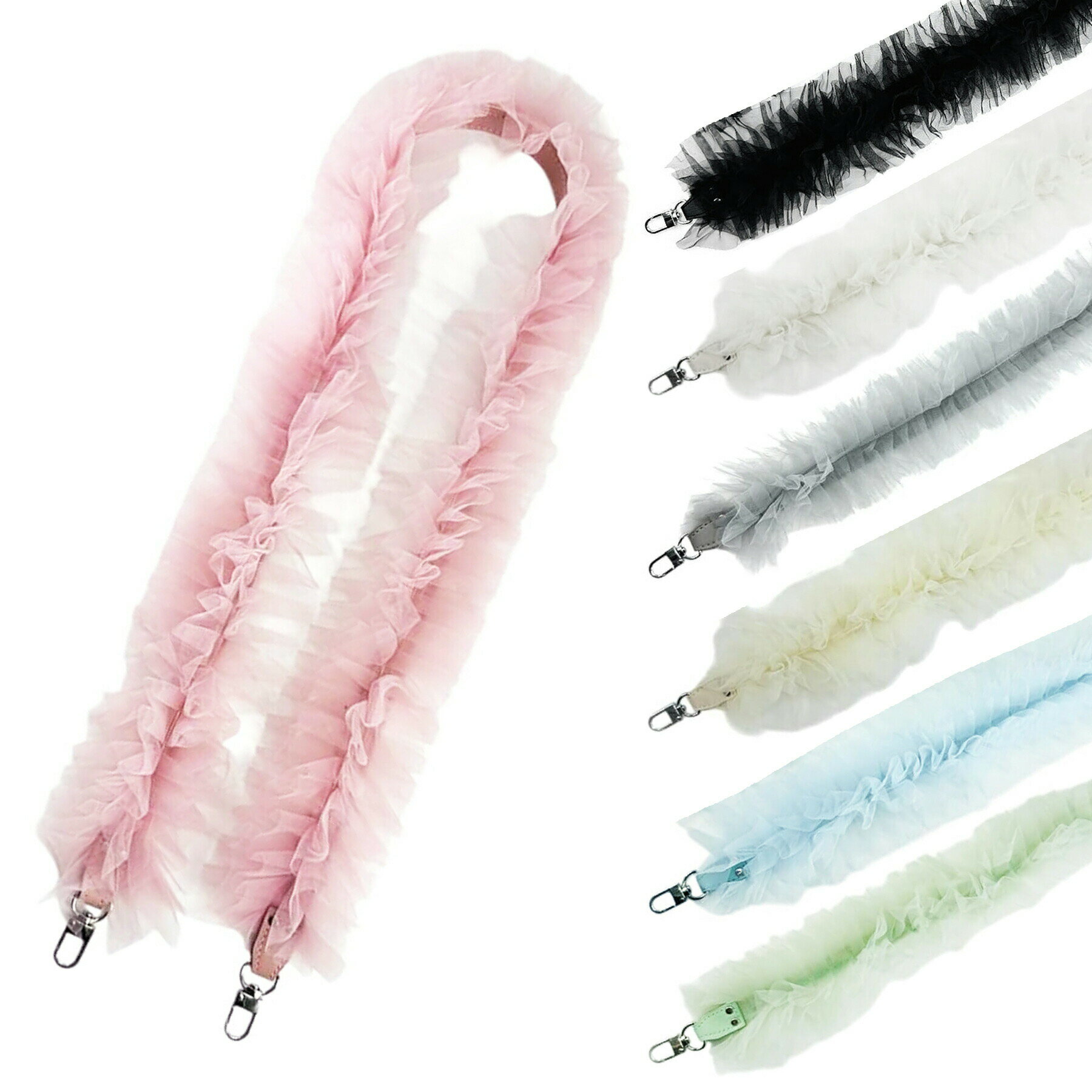 スマホショルダー フリル チュール 全7色 ストラップ ギャザー レース 紐 コード ボリューム 肩掛け 斜めがけ 携帯 バッグ ベルト レディース 可愛い おしゃれ ファッション 小物