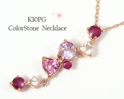 ルビー ピンク アメジスト ピンクトルマリン Y字 ネックレス K10PG 10k 10金 ピンク ゴールド 7ストーン 【プレゼント ギフト】 ▼