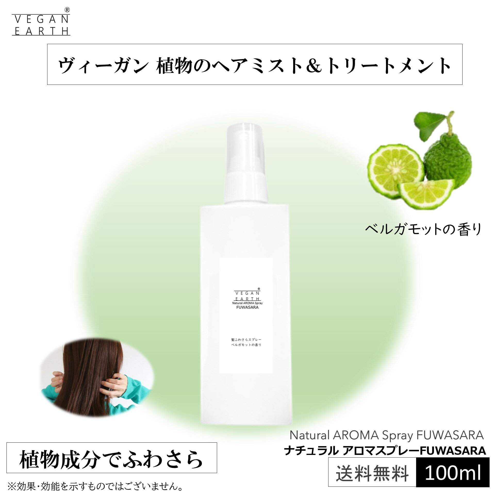 【植物の髪ふわさらスプレー】ナチュラル アロマスプレーFUWASARA ベルガモット 植物由来 天然成分由来 ふわさら スプレー 長続き 微香 爽やか 気持ち リフレッシュ 天使のリング成分