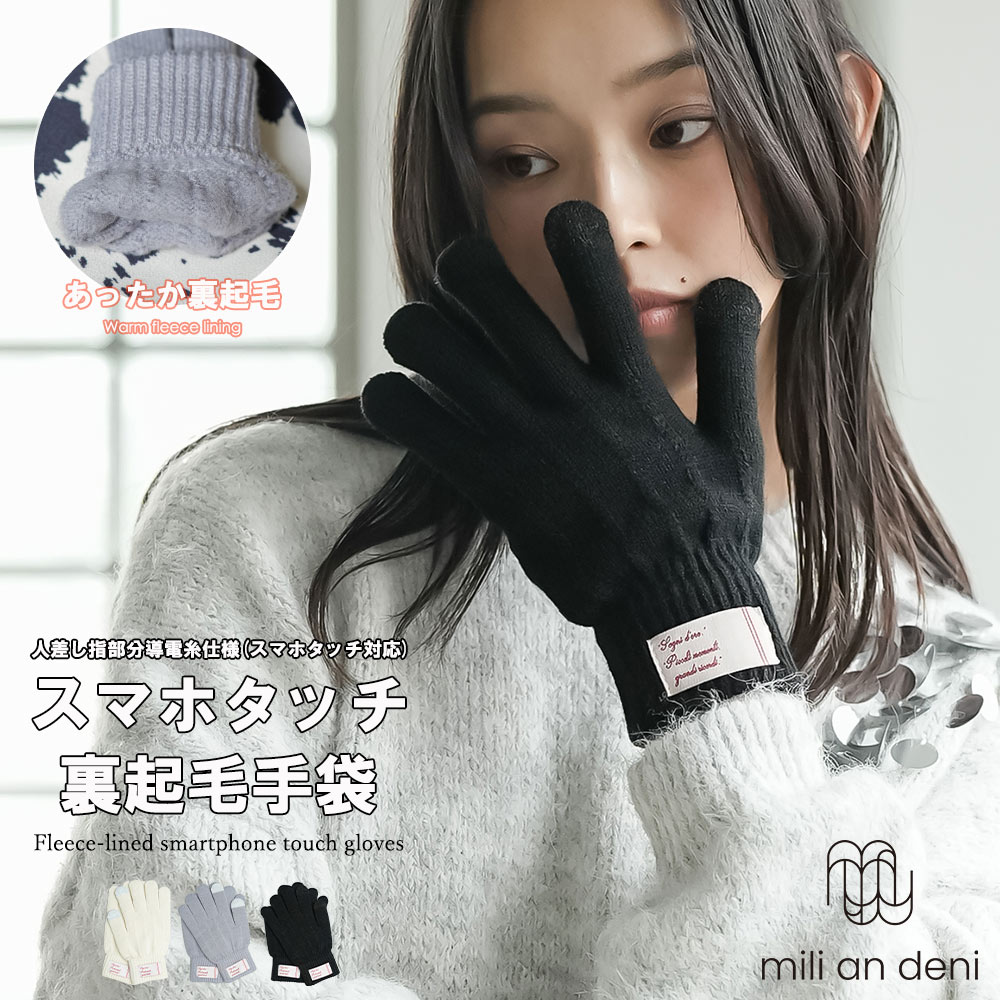 【17%OFFクーポン☆】裏起毛スマホタッチ手袋 スマホタッチ対応 無地 フリーサイズ 雑貨 アクセサリー レディース 秋 冬 ミリアンデニ