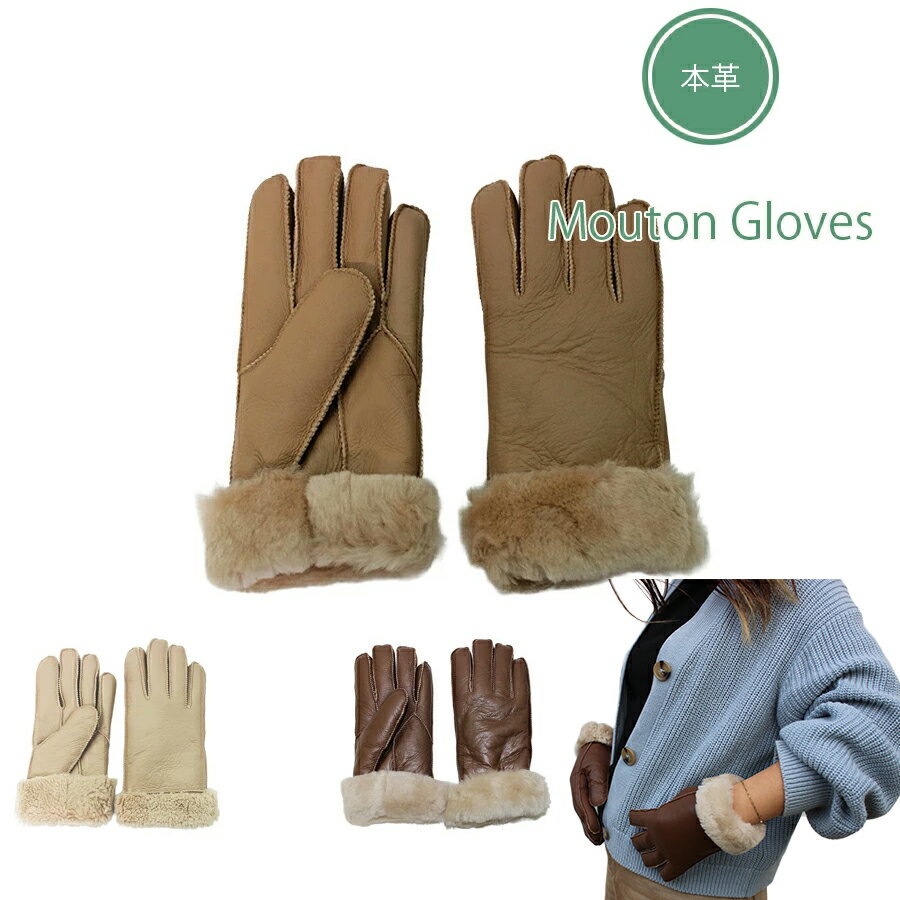 ムートン手袋 レディース グローブ 本革 羊革 裏ボア 防寒 暖かい ムートンファー ダブルフェイス レザー ファー手袋 フリーサイズ ギフト プレゼント Sheepskin Mouton Gloves ムートングローブ