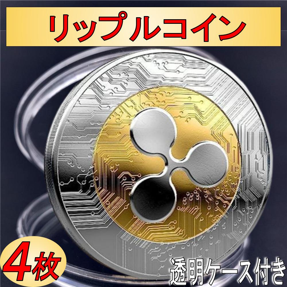 リップルコイン XRP 記念コイン コレクション 4枚セット アクリルケース付き ギフト プレゼント 飾り用 仮想通貨 レプリカメダル