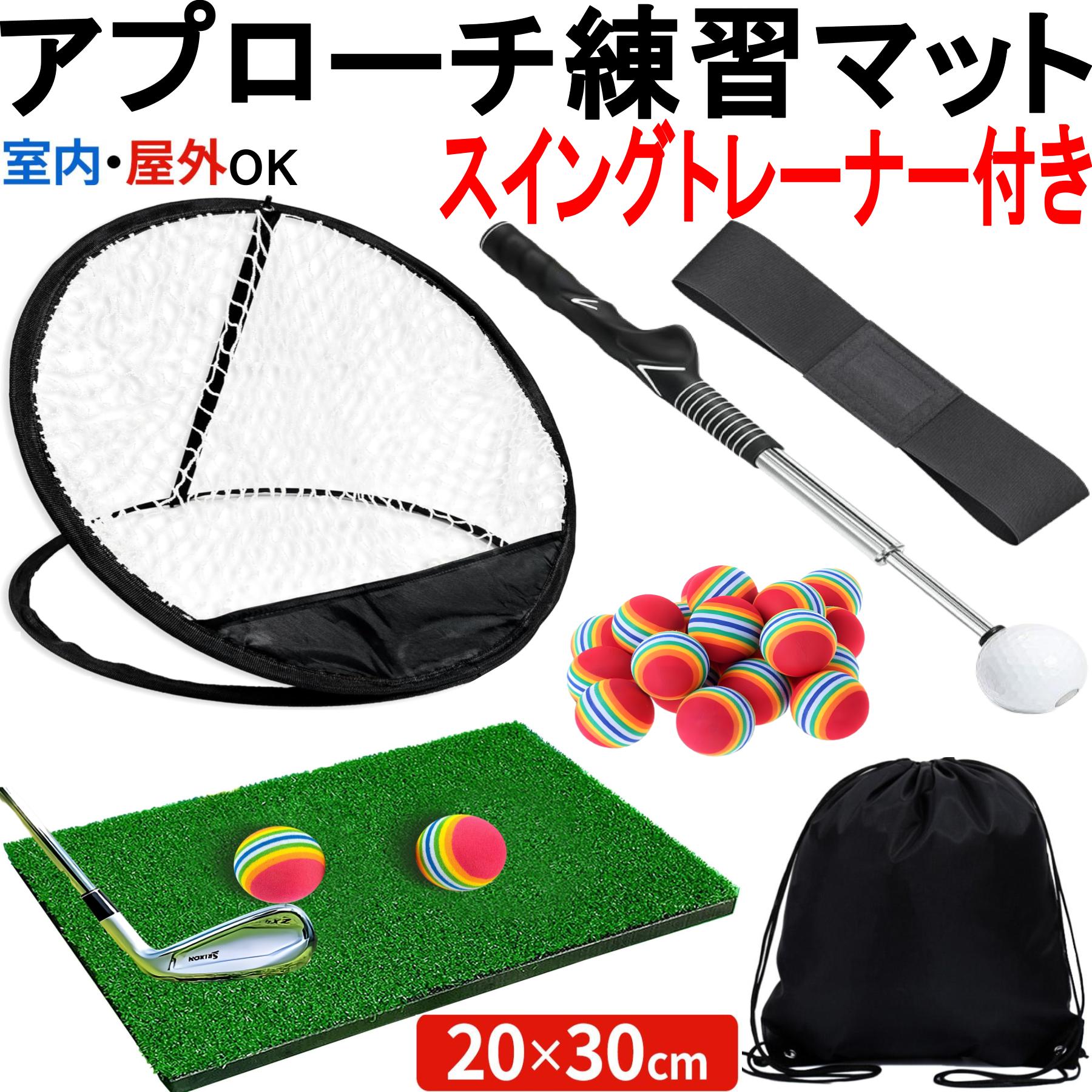 ゴルフ練習器具 アプローチ練習 アプローチ練習器具 ゴルフマット スイングマット ゴルフネット アプローチネット 室内 トレーニング アプローチ 芝マット 人工芝 EVAボール スポンジボール 20個 収納袋付き 30-60cm