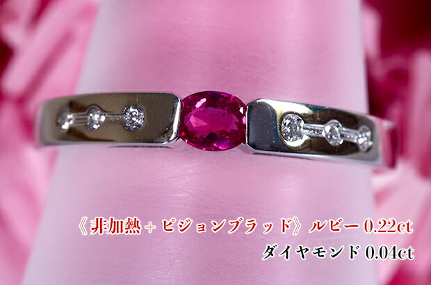 【非加熱】+【ピジョンブラッド】最強非加熱ルビー!魔性のブラッドカラー!ダイヤ一文字ラインに強く燃えたつ美貌の深紅!Ptルビー0.22ct(D0.04ct)リング!【AIGS鑑別書付】