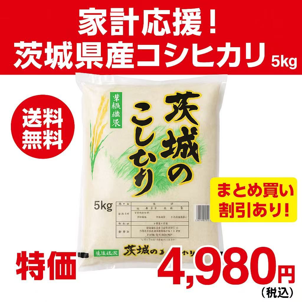 【送料無料】茨城県産コシヒカリ 5kg 特価4,980円(税込) 家計応援!令和6年産 新米/まとめ買い割引あり