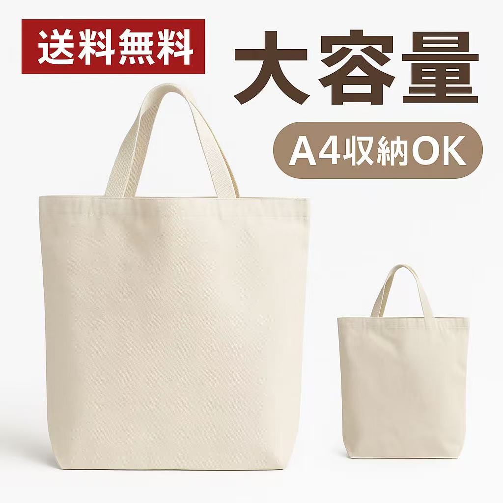 【送料無料】大容量 無地キャンバストートバッグ エコバッグ マイバッグ A4サイズ対応 シンプルデザイン 丈夫な厚手コットン