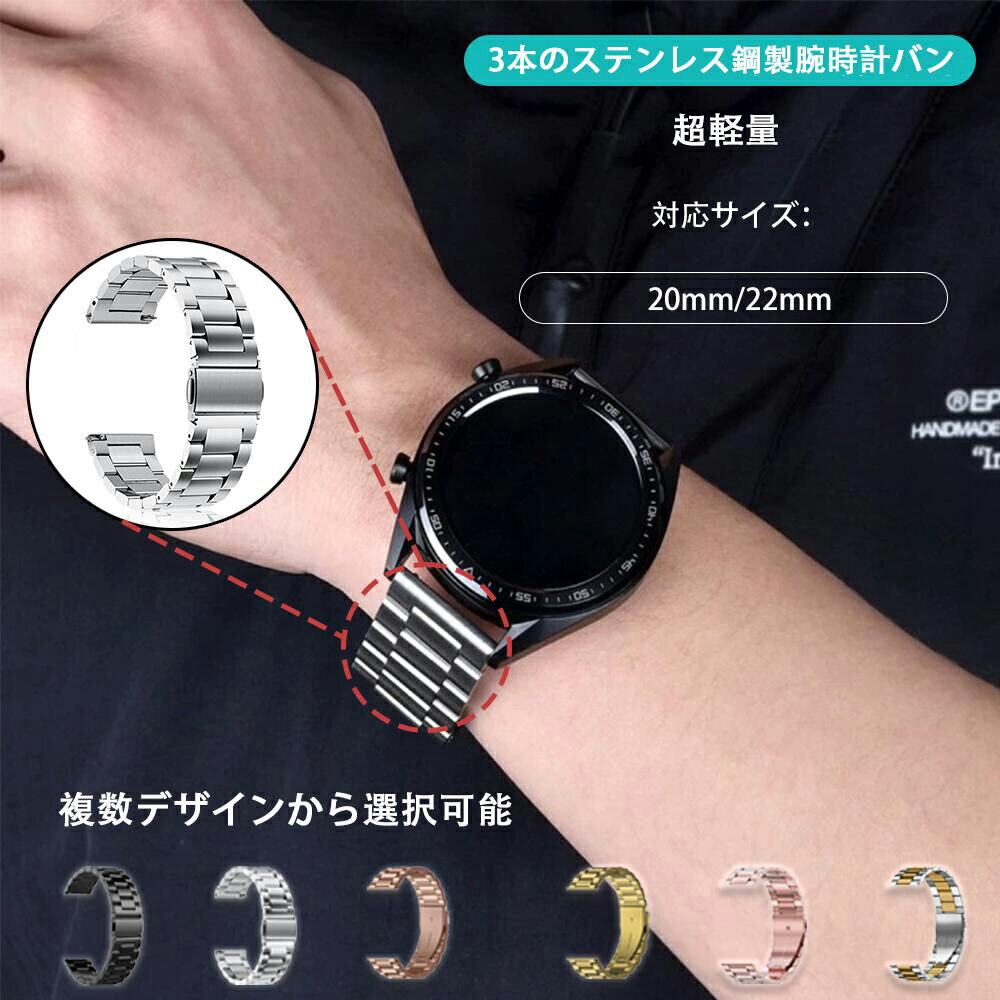 腕時計バンド 20/22mm 通用 【10秒簡単装着】 替え ベルト スマートウォッチバンド ステンレス 腕時計バンド 交換ベルト メタルベルト 金属ベルト スマートウォッチ対応 超軽量 腐食防止 抗菌 アレルギー対策 メンズ レディース 腕時計バンド 20/22mm 通用