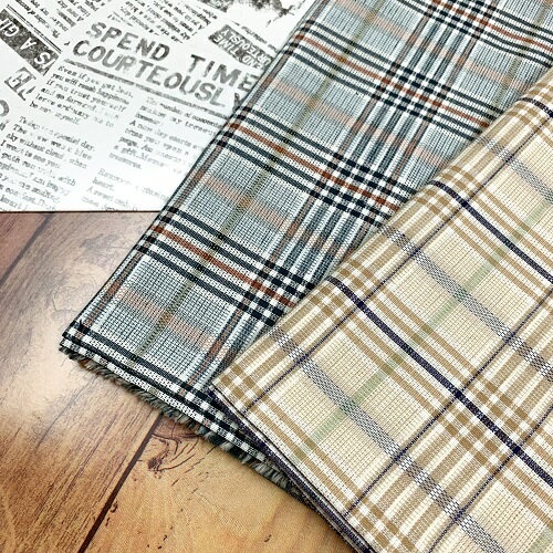 【50cm単位】【1.5mまでメール便対応】コットン 綿 リネン 麻 テトロン チェック ブルー 青緑 ベージュ 布 先染め ワイド幅 幅広