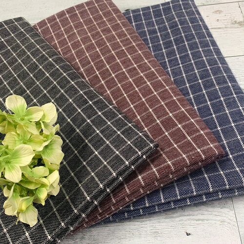 【50cm単位】【1mまでメール便対応】コットン 紺 えんじ 黒 播州織 生地 日本製 布 綿100% 先染め ツイル 起毛 秋冬 幅広 フランネル ビエラ チェック ネル生地