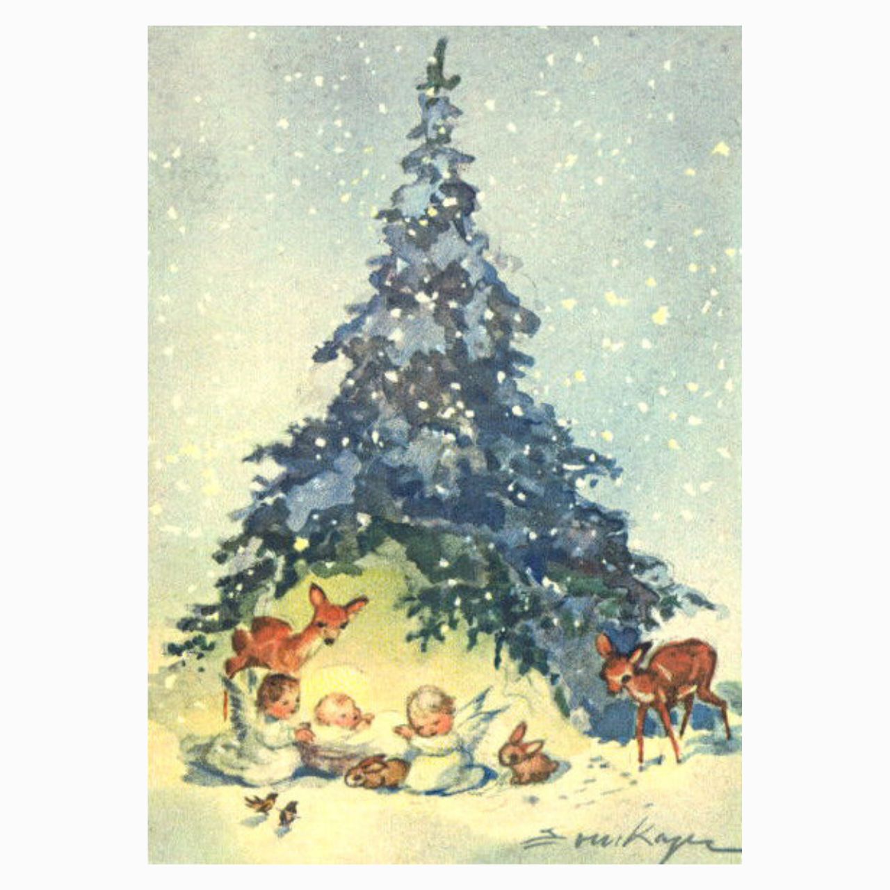 お誕生日の森 ポストカード ハガキ 148×105mm 天使 エンジェル エンゼル 贈り物 ギフト お便り プレゼント アンティーク インテリア クリスマス ハロウィン 誕生日 可愛い おしゃれ 飾る 長方形