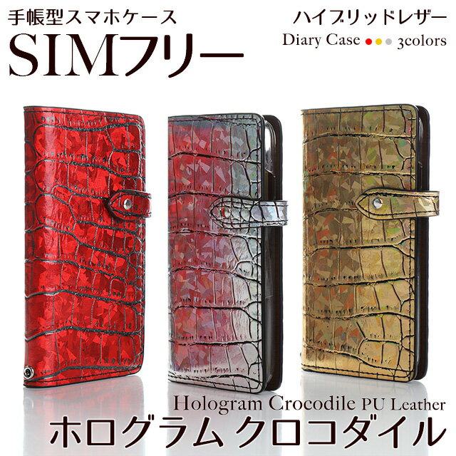 【ネコポス便送料無料】 スマホケース 手帳型 ホログラム クロコダイル 柄 ダイアリー ベルトあり ZE620KL ZS620KL ZS570KL ZenFone3 ASUS ZenFone ZE500KL ZE551 HTC HUAWEI P9 G620S GR5 AQUOS ARROWS RM02 エイスース ゼンフォン ファーウェイ SIMフリー 左利き 右利き