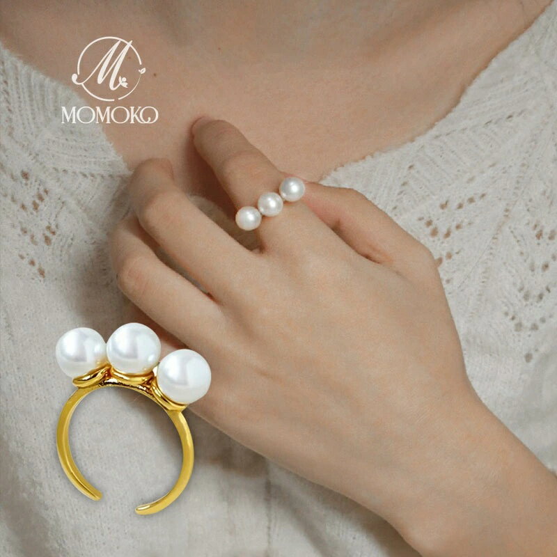指輪 パールリング 指輪 レディース フリーサイズ 人気商品 高見え おしゃれ スリーパールリング ピアス ブランド ママアクセ アクセサリー 結婚式 大人 調節可能 アレルギー対応 ホワイトデー お盆