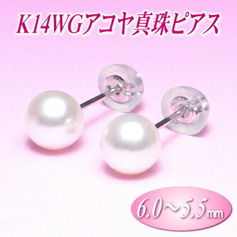 K14WG アコヤ真珠 ピアス (6.0〜5.5ミリ)( 真珠 パール WG ホワイトゴールド あこや真珠 本真珠 )