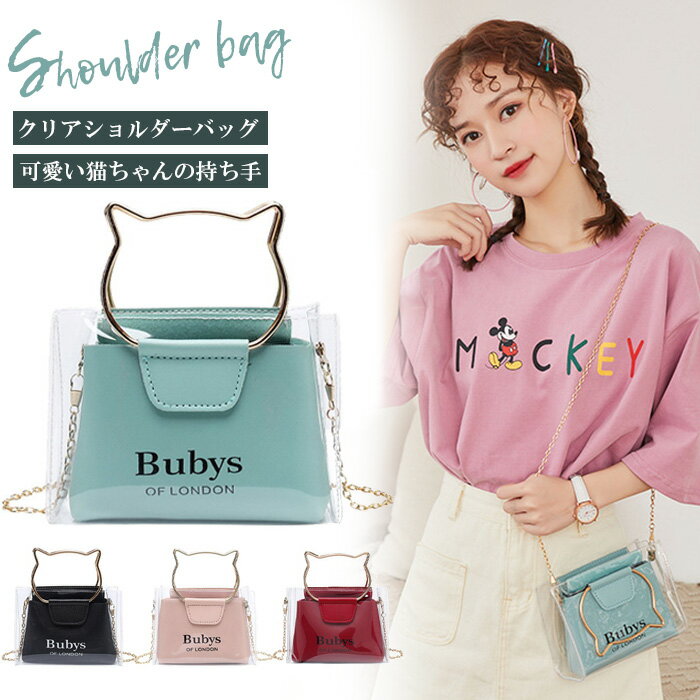 【16日全品対象8%割引券】ミニバッグ ポシェット ポーチ パステルカラー 女性 レディース ねこ型ハンドル 透明 小さい ショルダーバッグ マチ付き やわらかい 誕生日 母の日 プレゼントかわいい JK