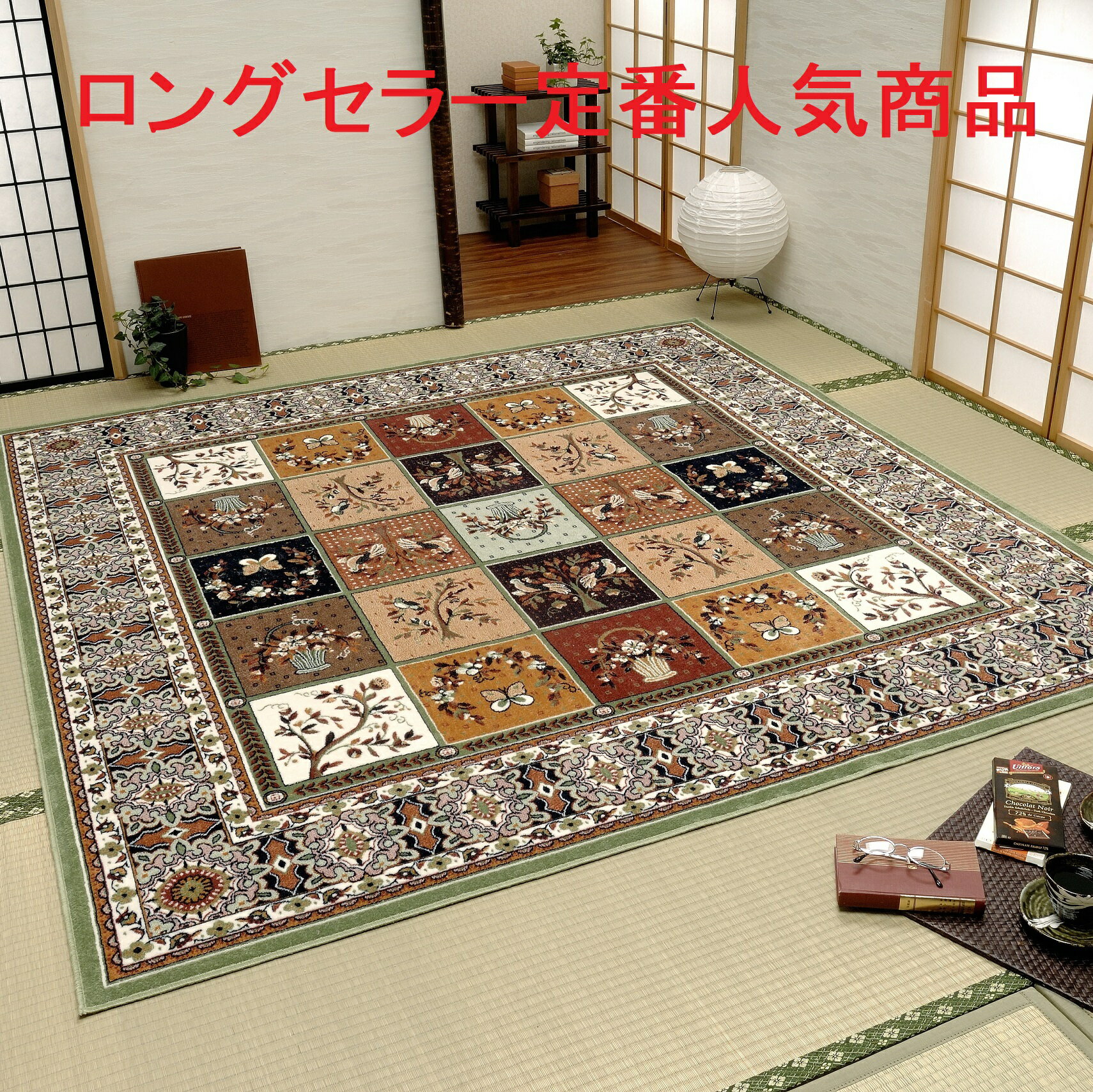 高級ベルギー製ウィルトン織廊下敷き オリエンタルデザイン ヒートセット加工 廊下カーペット 80×340cm ライトグリーン