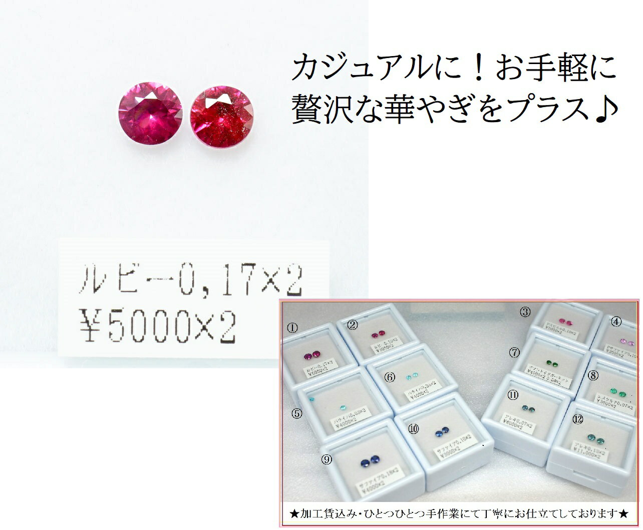 天然 ルビー 0.17ct×2 ルース 原石 宝石 裸石 ナチュラルストーン ジェムストーン【加工承ります】