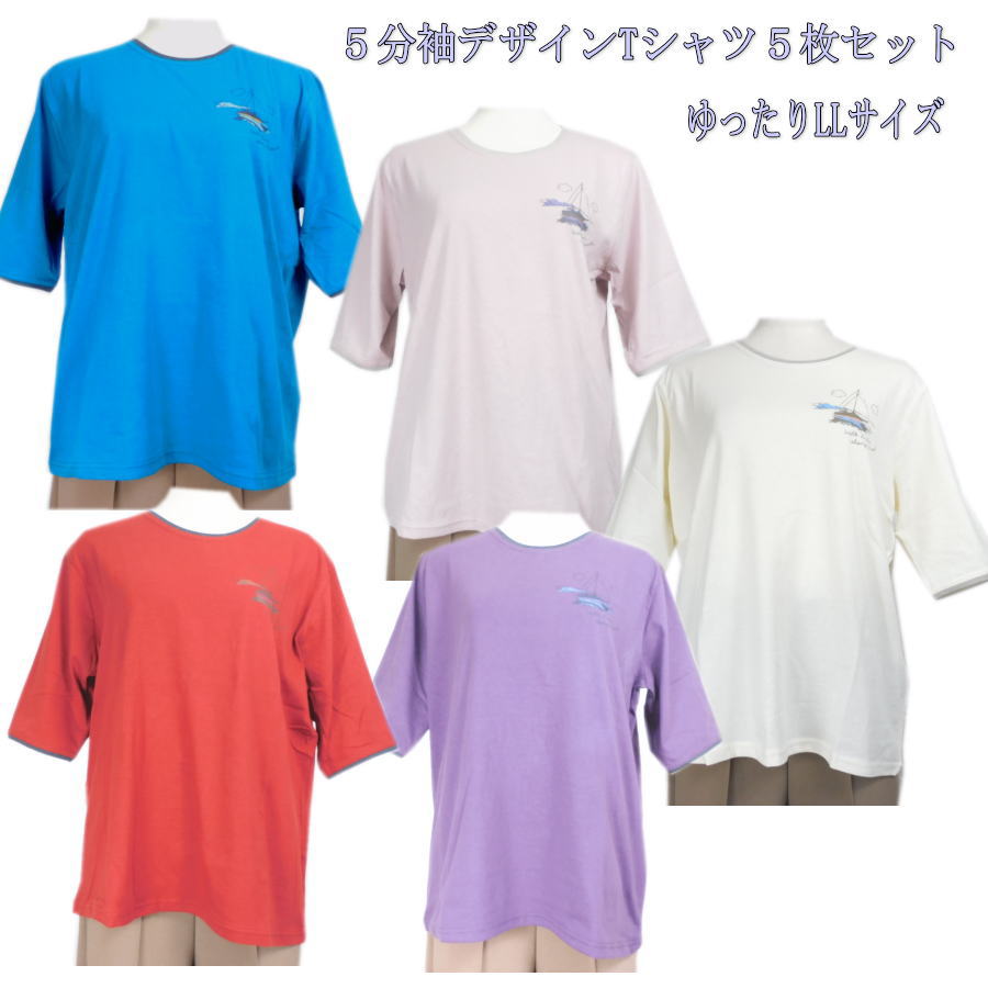【0のつく日★1/20(火)最大半額引きクーポン&P3倍】シニアファッション レディース 【母の日 プレゼント セット お得 ファッション 80代70代 夏綿100% 天然素材5分袖 ヒジが出ない Tシャツ ゆったりLLサイズ 5枚 セット