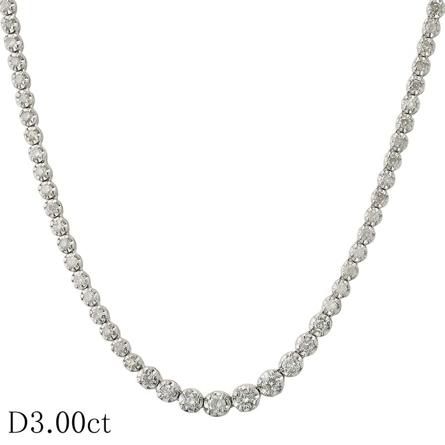 ダイヤモンド/3.00ct テニス ネックレス K18WG【中古】【JS1839】
