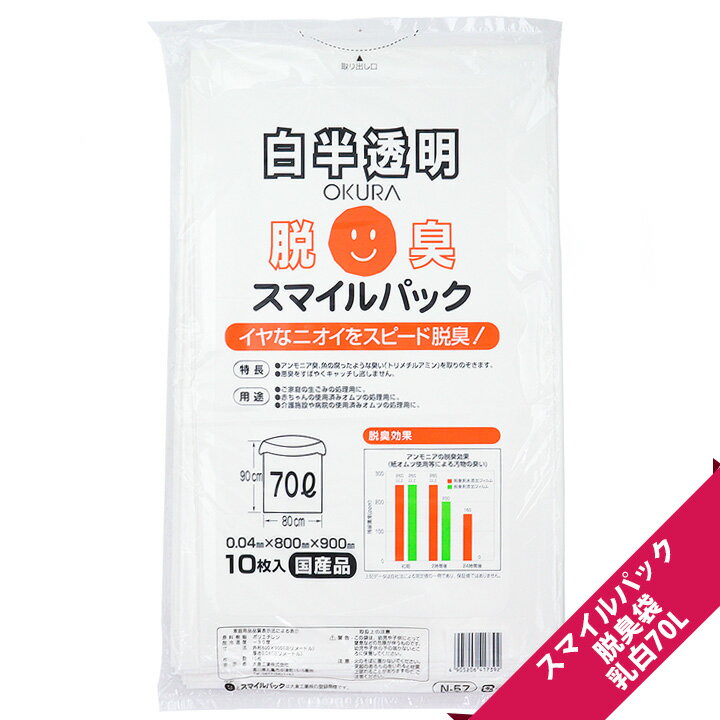 スマイルパック脱臭袋 乳白70L【10枚入/白半透明/脱臭/生ごみ処理/オムツ処理/国産品/ポリエチレン】【宅配便限定】