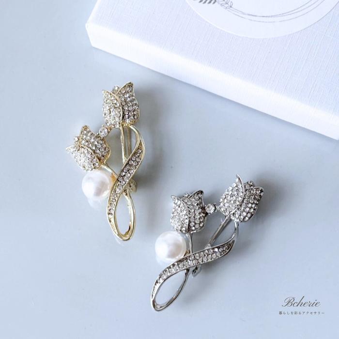 ブローチ 結婚式 卒業式 入学式 フォーマル パール おしゃれ フラワー 花 アクセサリー 30代 40代 50代 チューリップ ジルコニア セレモニー スーツ 40代 50代 プレゼント