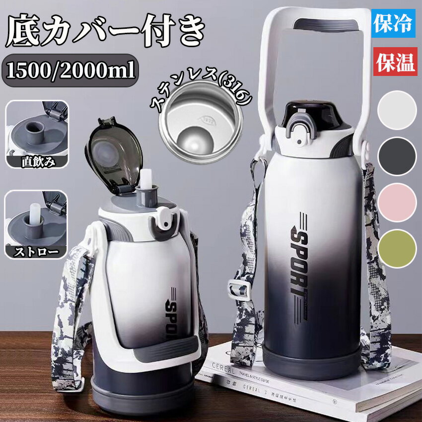 水筒 大容量 2リットル 1.5リットル 保冷 氷入れ スポーツジャグ 真空 直飲み 水筒 ハンドル付 持ち運び 大人 こども 子供 スポーツ 大容量 スポーツボトル キャンプ用 アウトドア 保冷 水筒 大容量 ステンレス 真空断熱 氷 持ち運び