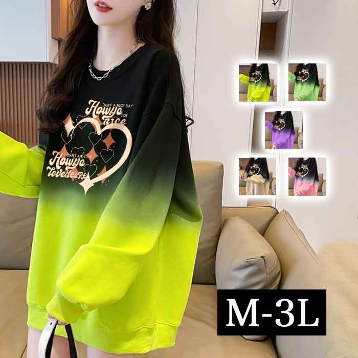 ゆったり BIG 大きいサイズ レディース スウェット スエット トレーナー ビッグサイズ オーバーサイズ 長袖 プルオーバー 派手 カラフル ペイント 裏起毛 秋 冬 春 秋冬 チュニック 大人可愛い カジュアル