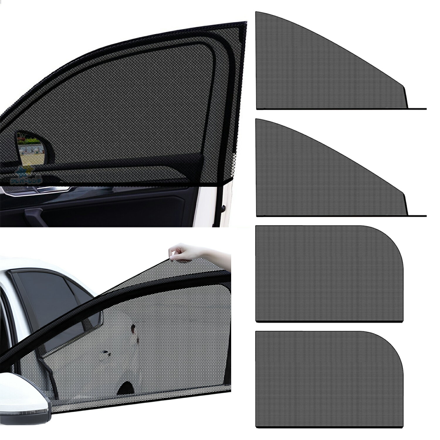 車用網戸 ウィンドウ用防虫ネット 通気性抜群 弾力フィット 簡単取付 虫除けカーテン 前席+後部座席サイド窓対応 夏/キャンプ用 暑さ対策 日焼け止め 車内換気 車中泊 アウトドア(セダン/SUV)