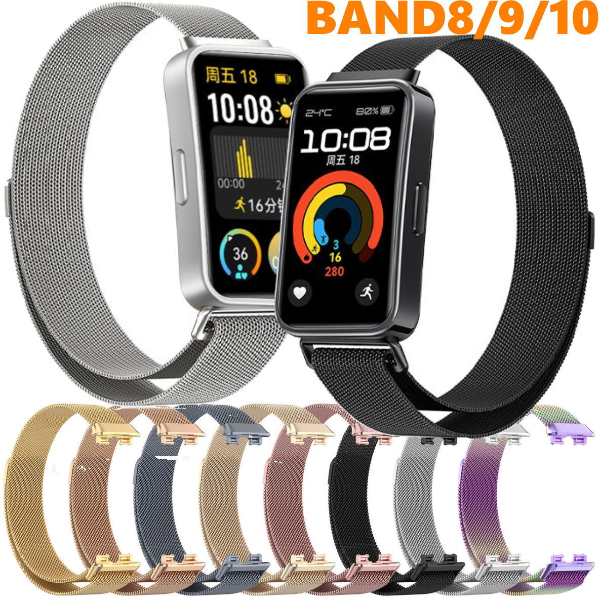 Huawei Band 9 Huawei Band 10/9/8 マグネット式 スマートウォッチバンド ファーウェイ バンド8 ファーウェイ バンド9 ファーウェイ バンド8 シリコン製 純正タイプ 調節可能 通気性 交換用リストバンド