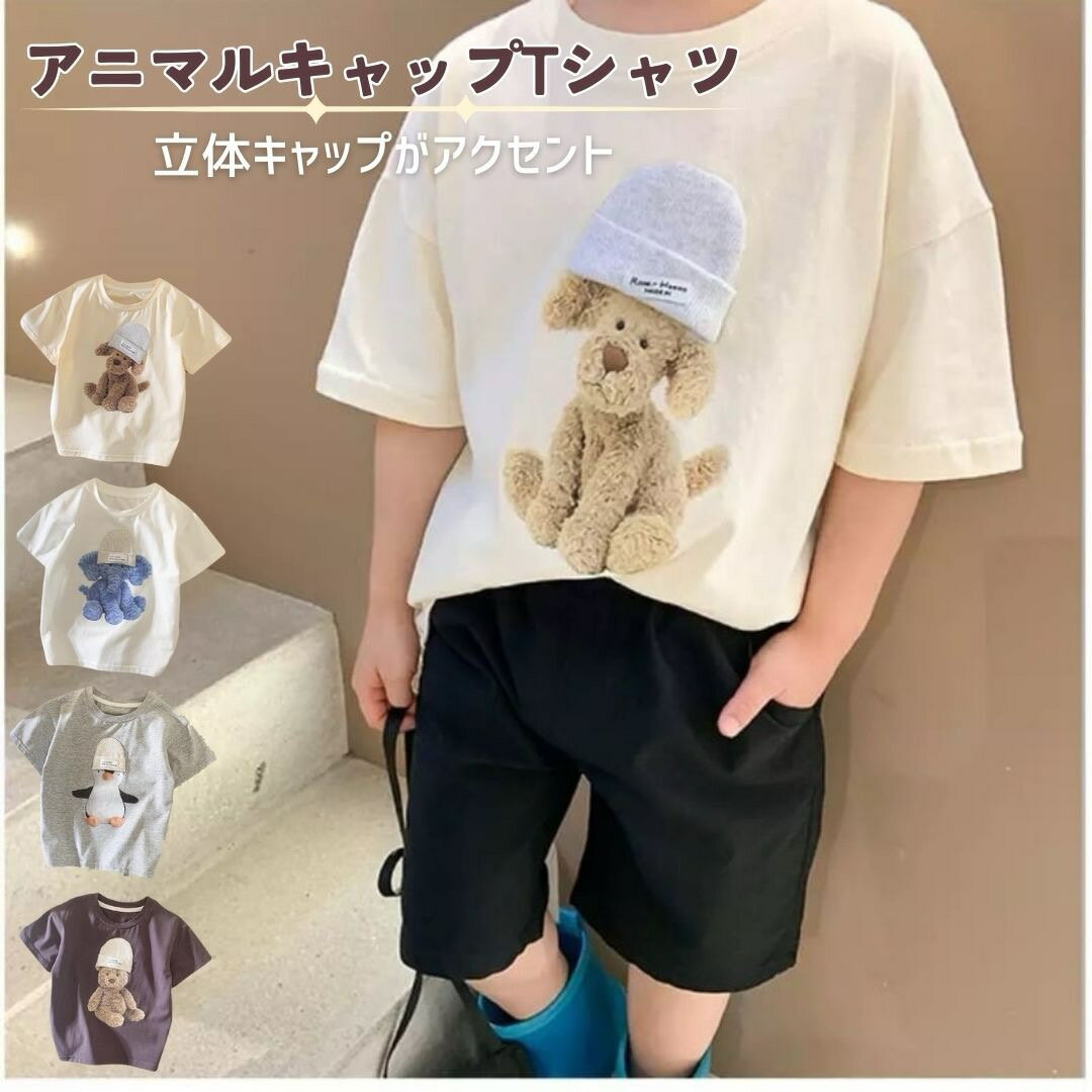 アニマルプリントTシャツ 子供Tシャツ こどもTシャツ キッズ半袖tシャツ 動物 ペンギン 犬 子供服100cm 子供服120cm 子ども服 こども服 子供用服 キッズ服 おしゃれ 半袖 カジュアル 保育園 服 100センチ 120センチ 男の子服おしゃれ 女の子服100