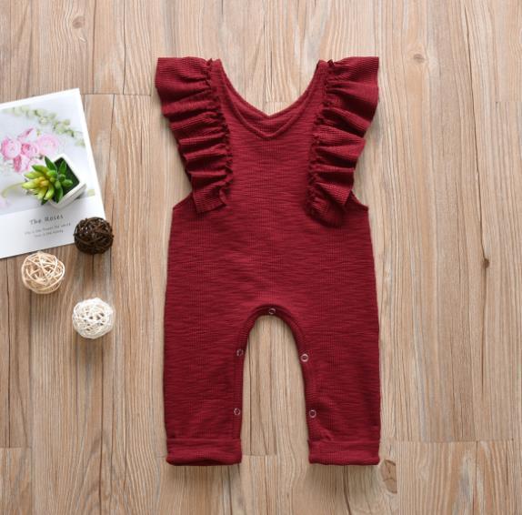 ベビーロンパース オールインワン コットン ワインレッド おしゃれ 女の子服 ベビー服 80cm
