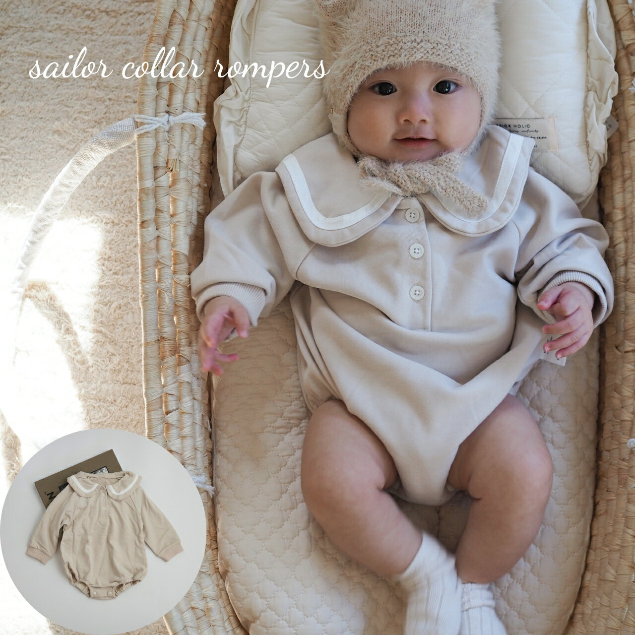ベビー 女の子 男の子 長袖 ロンパース sailor collar rompers セーラーカラー 襟 パイピング 丸襟 コットン 可愛い 韓国 風 クラシック 60cm 66cm 70cm 73cm 80cm 90cm インポート 海外 春 秋 冬 送料無料