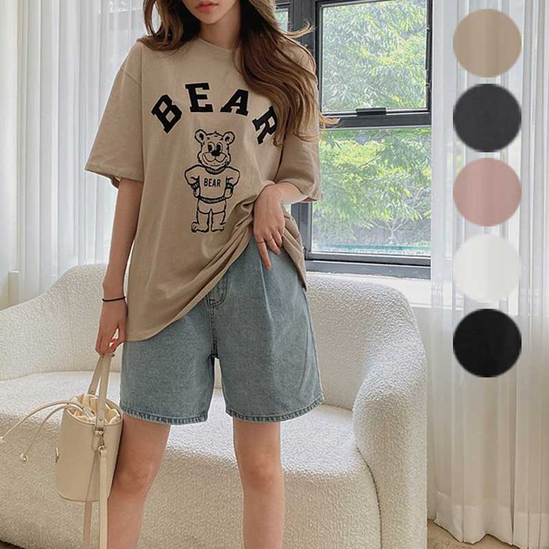袖配色切り替えPOPなBIGロゴ[CAMEO]プリントゆったりアシンメトリー半袖Tシャツカットソー