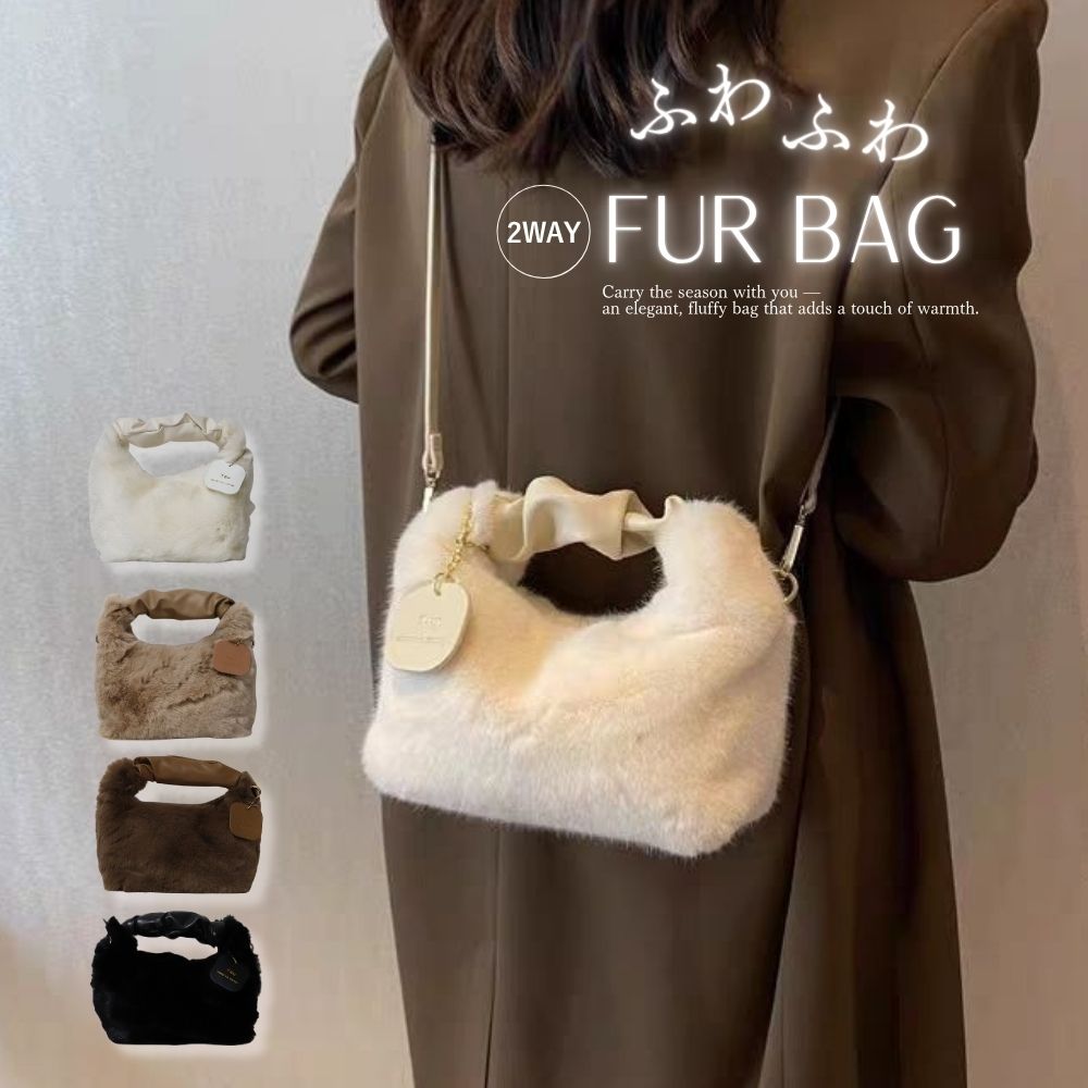 ファーバッグ エコファー ファーバッグ 2way bag バッグ かわいい ハンドバッグ レディース ファーバッグ ショルダー 巾着 ショルダーバッグ 斜めがけ もこもこ ふわふわ 可愛い フェイクファー トートバッグ 冬 肩掛け 鞄 かばん パーティーバッグ 通勤