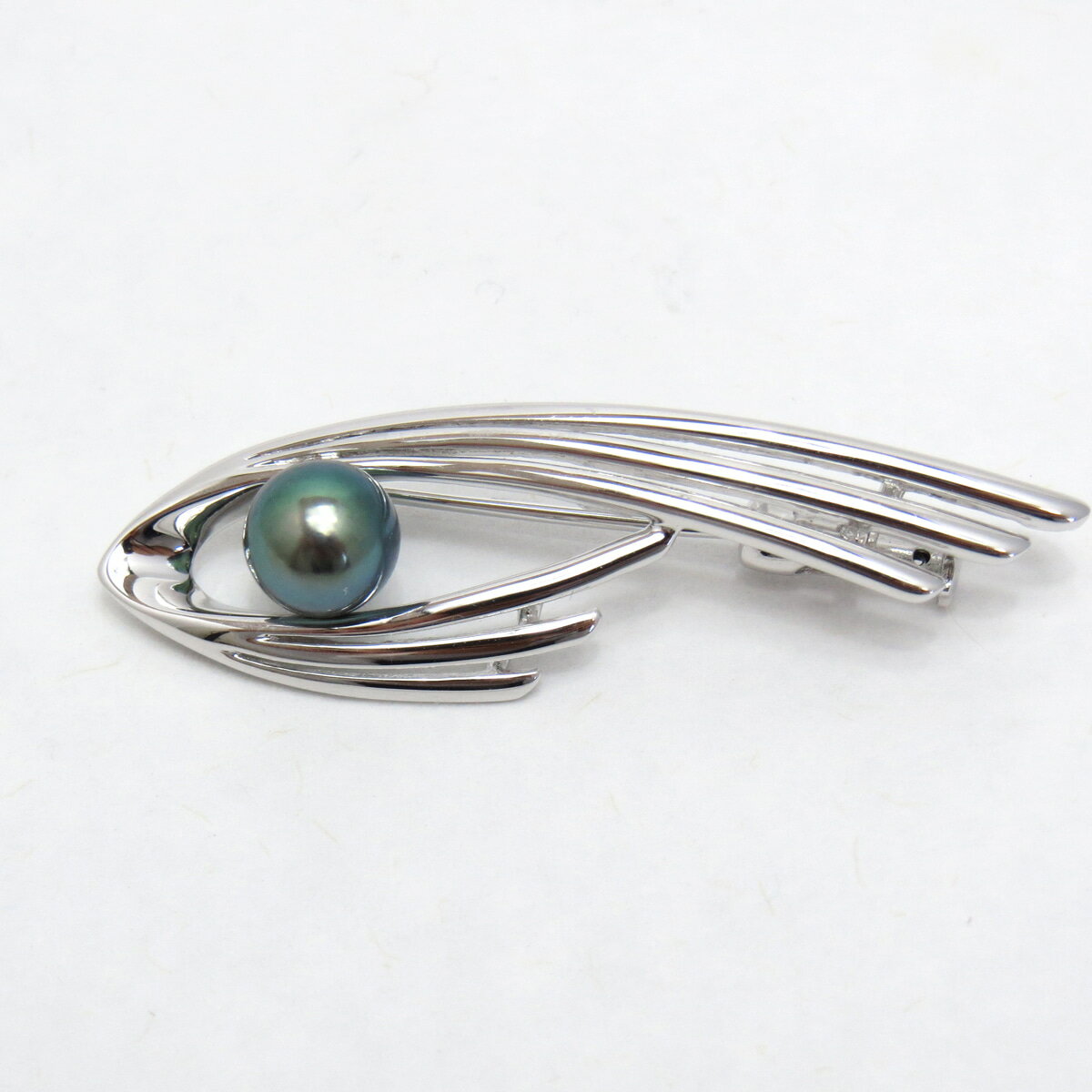 【全品ギフト包装】≪ 水面モチーフ ≫ 黒蝶真珠ブローチ 約15.0mm SV y-b-193 三重県真珠加工販売協同組合
