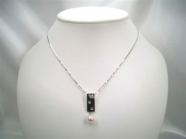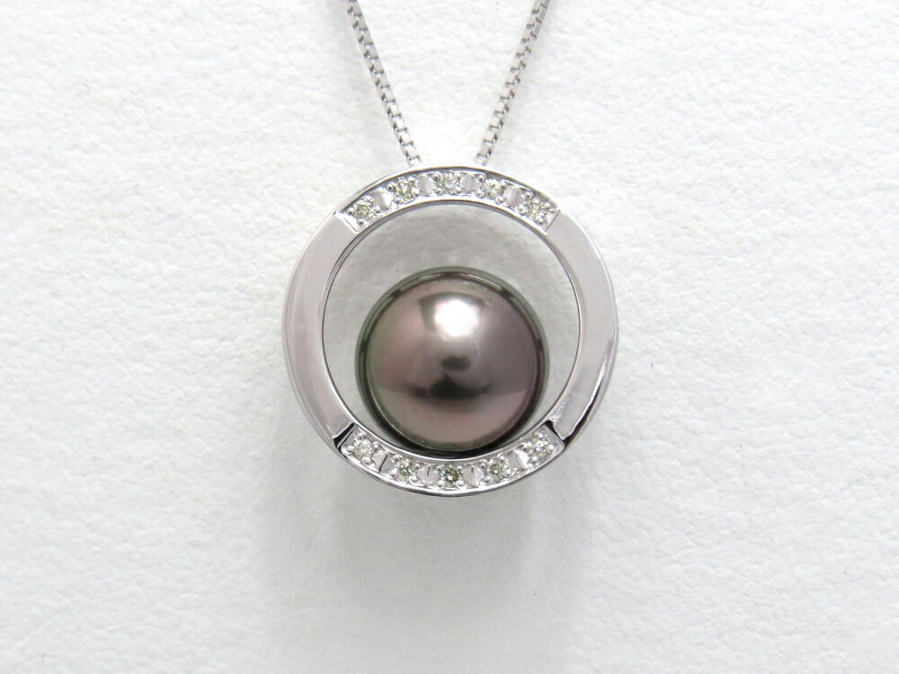 黒蝶真珠 ペンダントネックレス 約9.5mm K18WG ダイヤモンド-0.05ct 43cm y-p-172