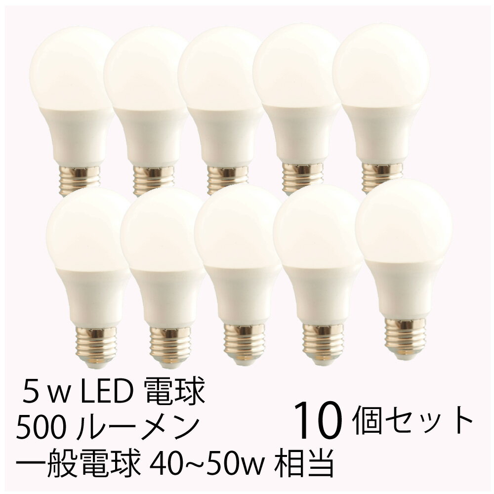 【日本製コンデンサー使用】5wLED電球 10個セット40〜50W形相当 6000K 昼光色 500ルーメン口金E26 消費電力5W