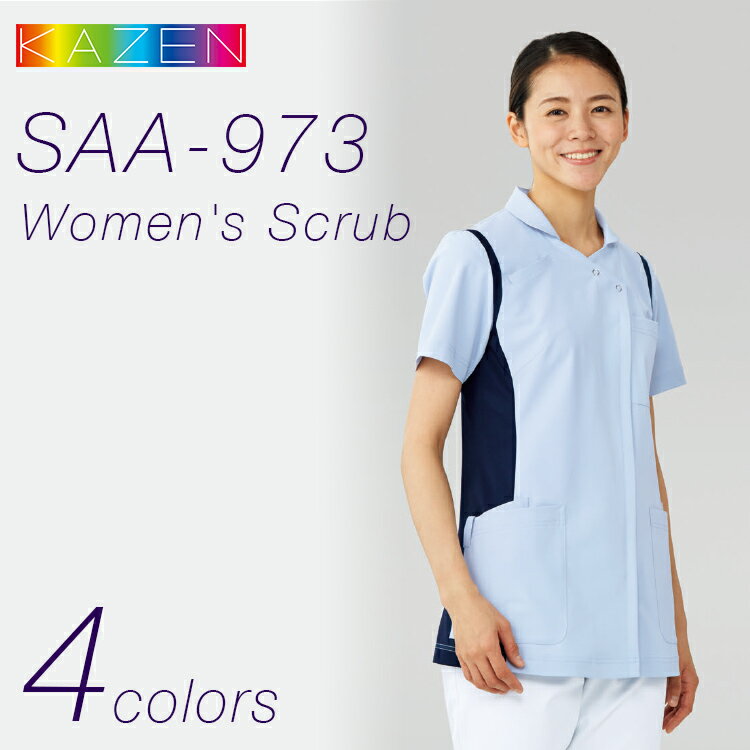 【ケーシー白衣 レディース】工業洗濯可・前開き・吸汗速乾 ポリ100% 比翼ファスナー仕様 4色/ナース服 医療 看護 介護 ケアスタッフ 訪問看護スクラブ KAZEN 973