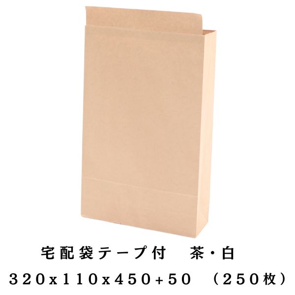 宅配袋 大 250枚 特大サイズ a3対応 茶・白 320×110×500+50mm 1枚@42円(税込)
