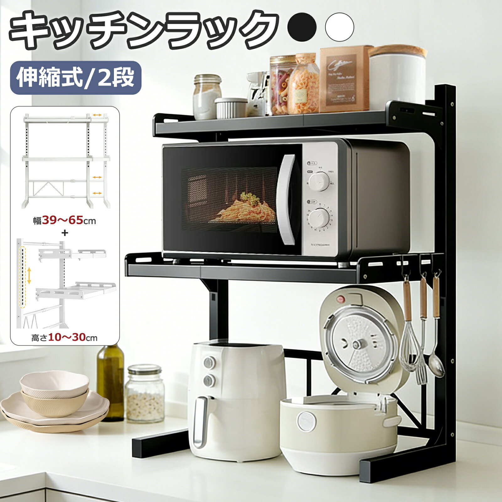 【伸縮可能】レンジラック 2段 3段 幅 高さ調節可能 キッチンラック レンジ ラック 伸縮 トースターラック レンジ上 ラック 伸縮式 レンジ台 キッチン収納棚 炊飯器ラック 調味料棚 台所棚 収納 キッチン収納 キッチン用品 スリム 高級感