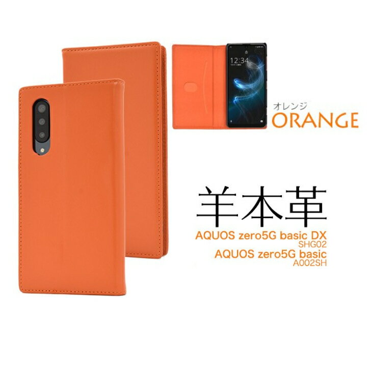 AQUOS zero5G basic DX(SHG02)/zero5G basic(A002SH) 用 アクオス シープスキンレザー 手帳型 ケース カラー オレンジ色