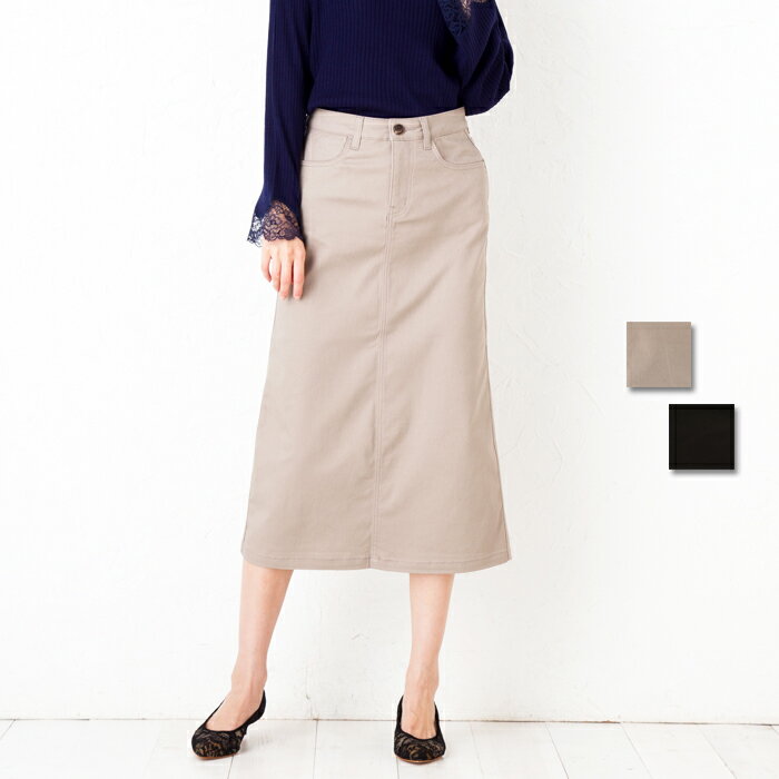 【終売セール・在庫限り】ストレッチツイル・ロングスカート レディース 春夏秋冬 綿 チノ ストレッチ ロング丈 後ろスリット 黒 ブラック ベージュ S M L LL タイトスカート【NOD】キャンセル返品交換不可