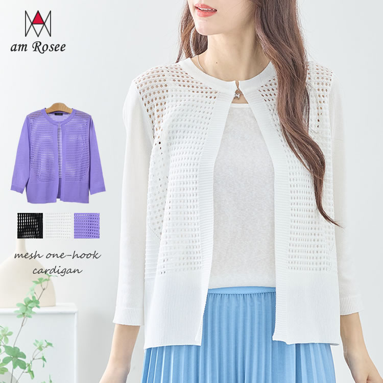 【メール便送料無料】メッシュ編みワンホックカーディガン◆レディース カーディガン 7分袖 シアー 羽織 アウター 丸首 キレイめ カジュアル 春 夏 レイヤード メッシュ編み ニット 30代 40代 50代◆