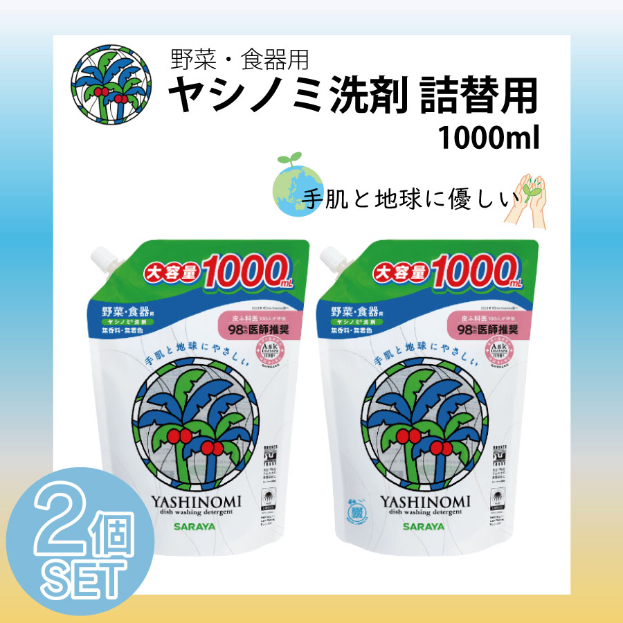 【お得な2本セット】サラヤ ヤシノミ 洗剤 1000mL 詰替用 洗剤 詰め替え用 キッチン用品 食器用 野菜 天然精油 食器 キッチン 無着色 無香料 無添加 家庭用 業務用