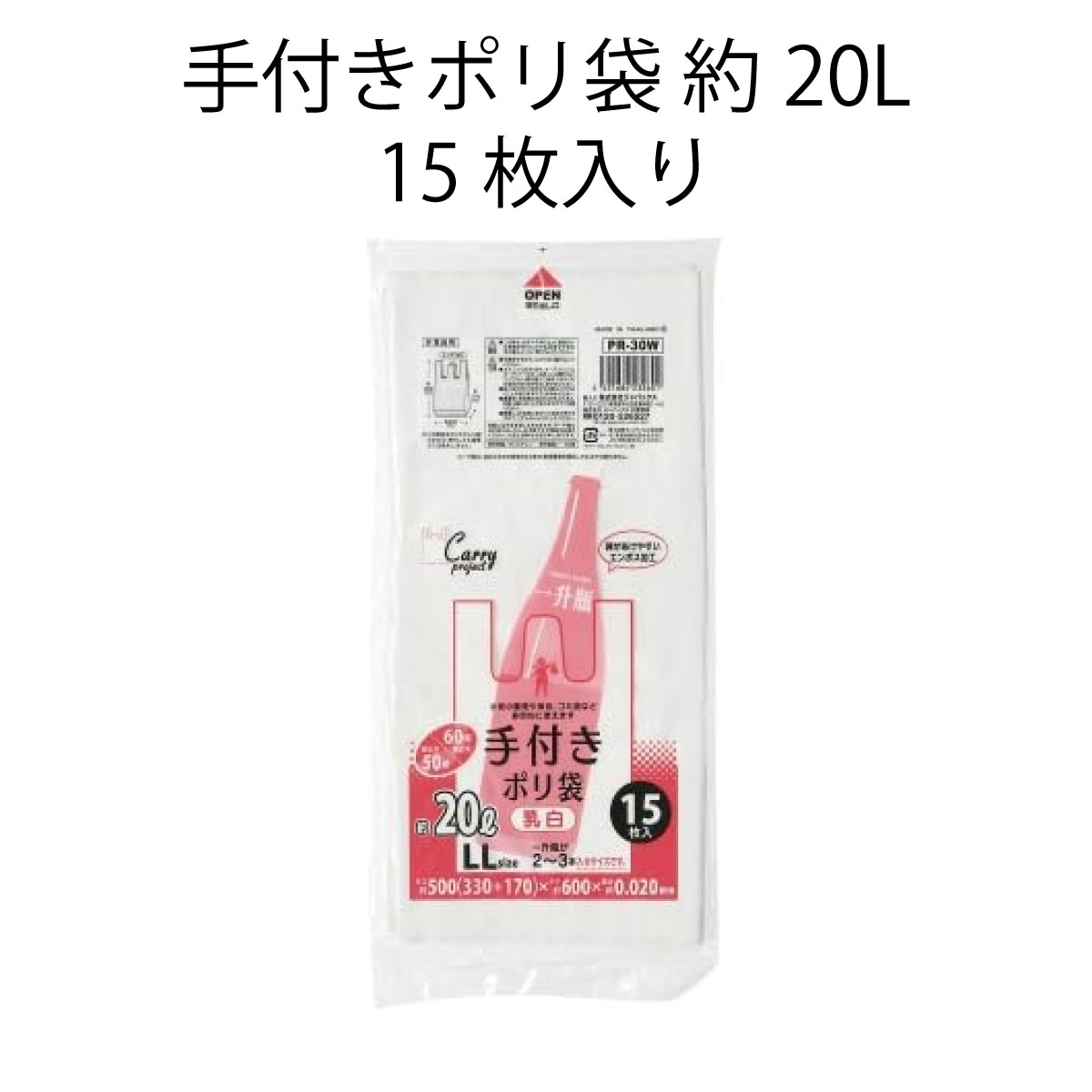 【300枚/600枚/900枚】手付ポリ袋 LLサイズ 約 20L 乳白 15枚入り 20個セット 40個セット 60個セット お得 まとめ売り ストック ケース売り レジ袋 お買い物袋 ビニール袋