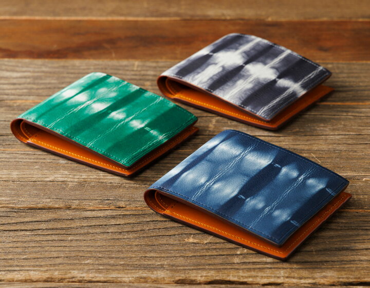 ◆絞り染め 二つ折り財布 小銭入れなし◆財布 革小物 メンズ レディース カード メイドインジャパン 牛革 革工房 直販 ハンドメイド