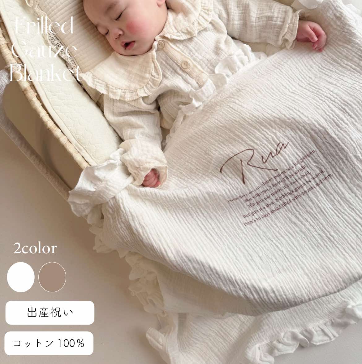 3営業日発送 名入れフリルガーゼブランケット おくるみガーゼ おくるみ 出産祝い 出産準備 名入れギフト ガーゼケット 綿100% 赤ちゃんに優しい ガーゼタオル バスタオル お包